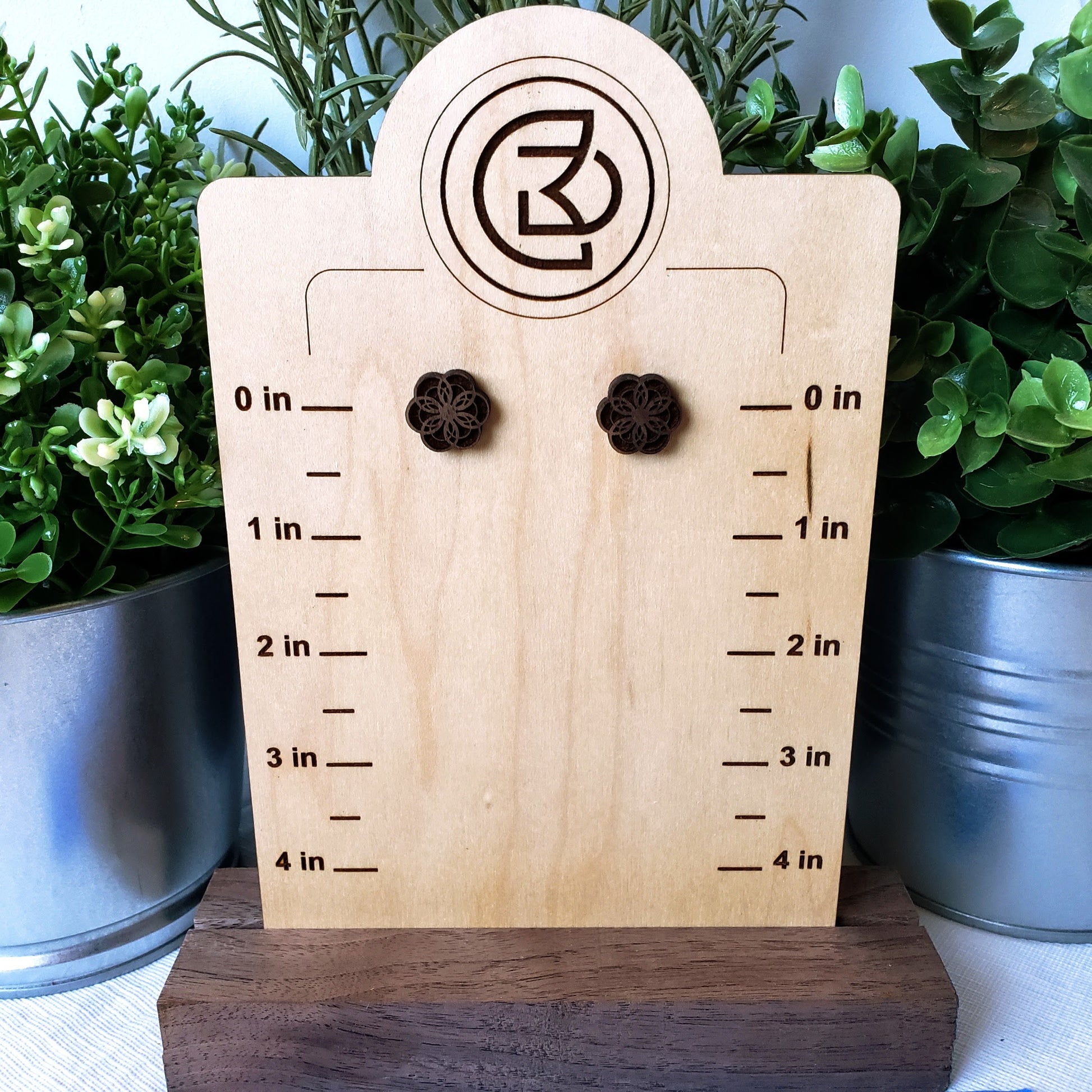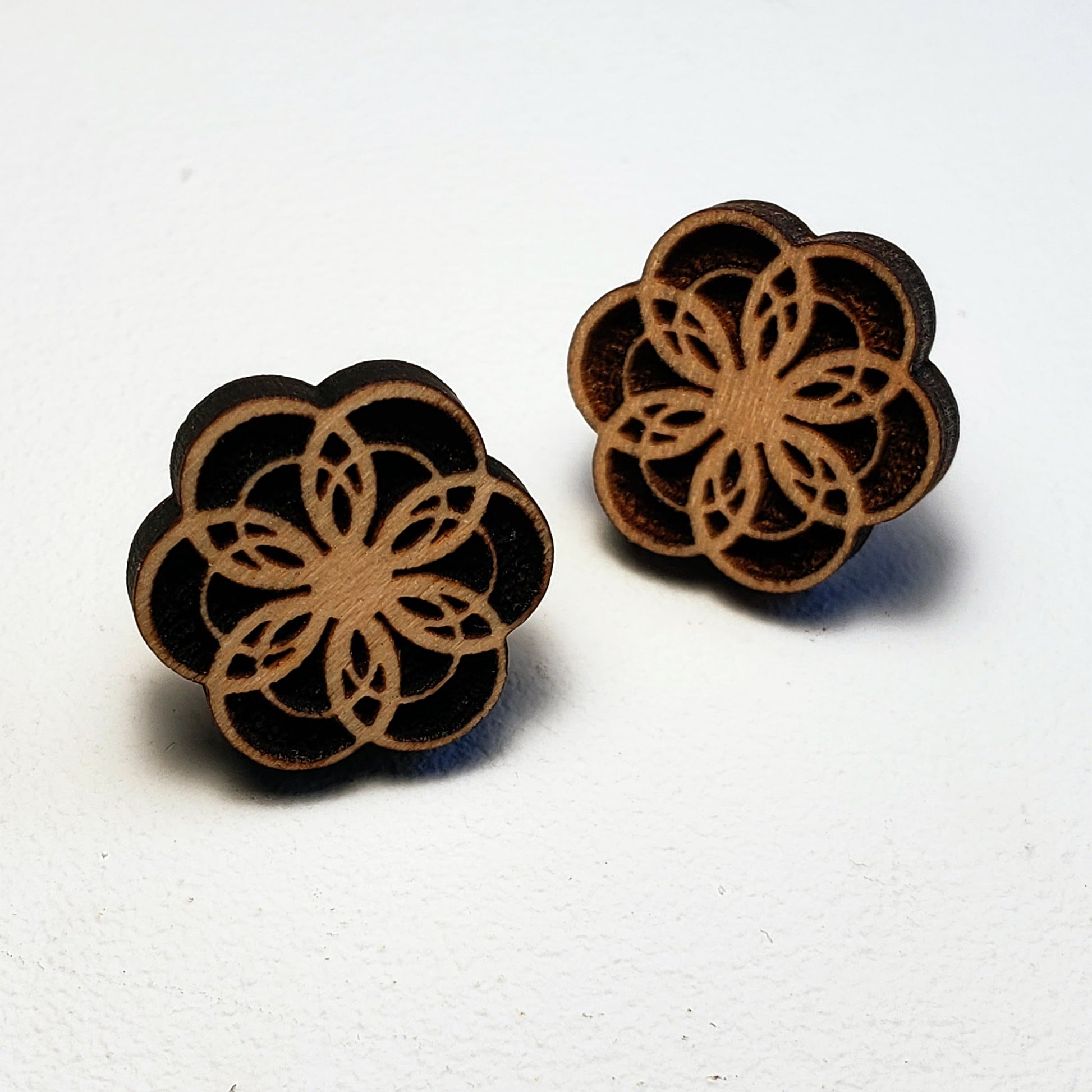 Geometric Floral - Wood Earrings