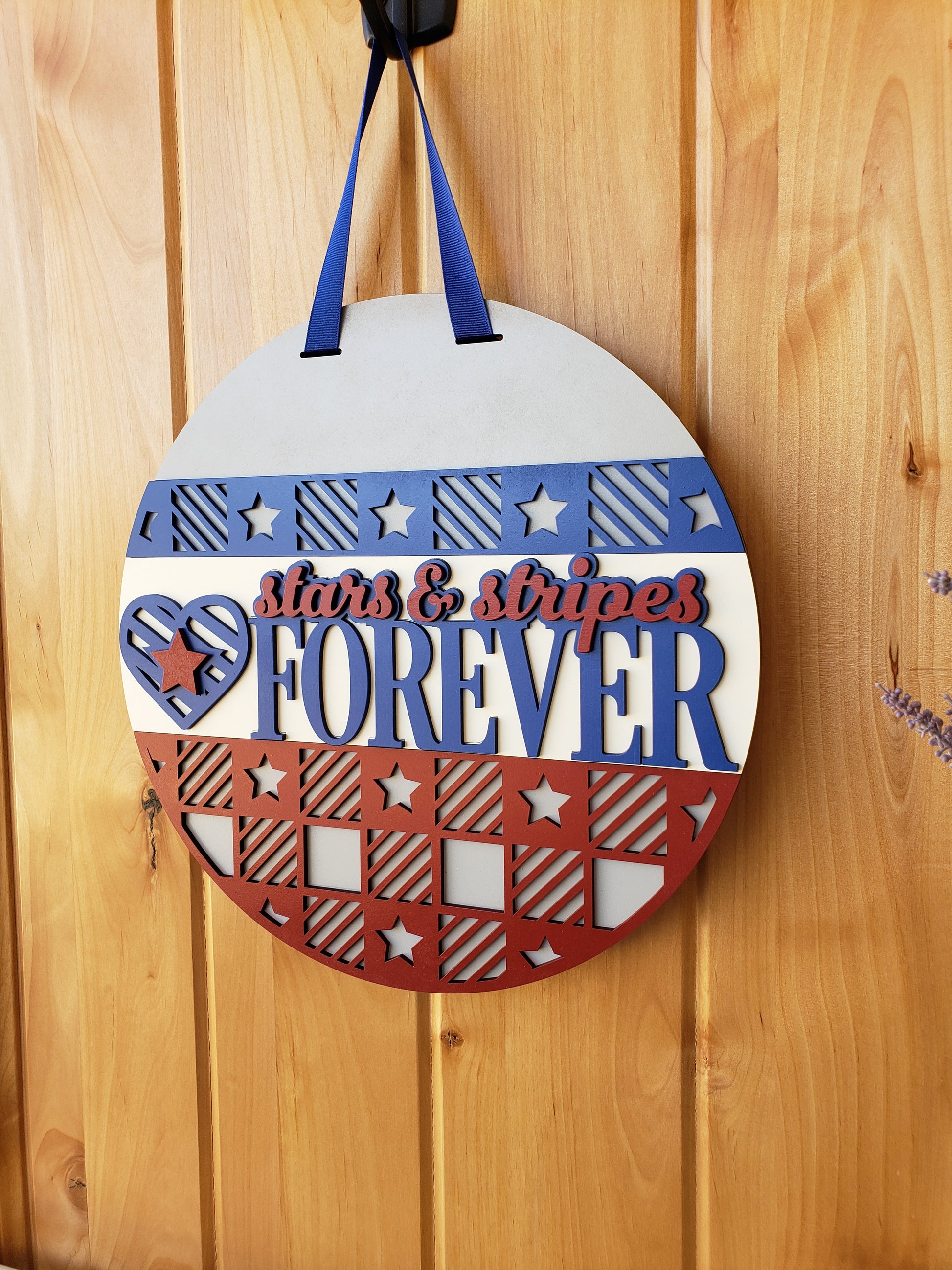 Stars & Stripes Forever - Patriotic - Round Door Sign